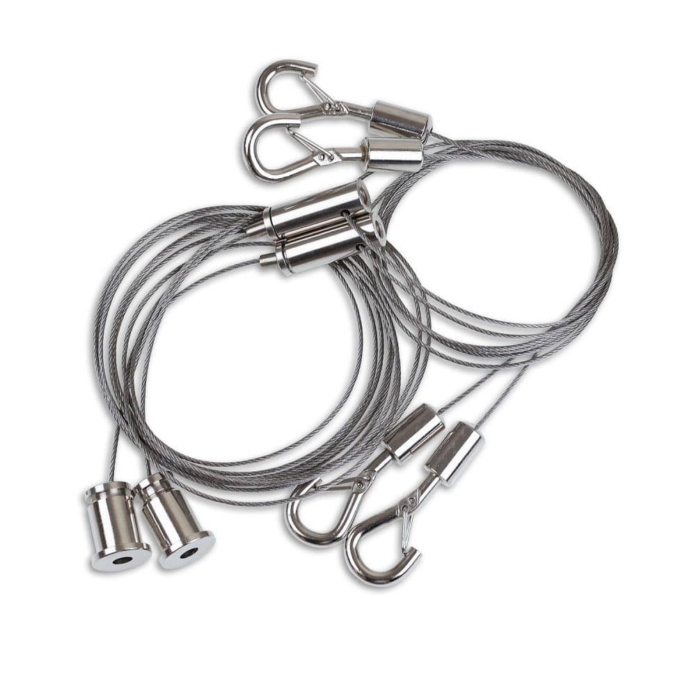 Suspension en Y avec câble (2 pièces) avec mousqueton, œillets pliants et pince coulissante incluant un câble en acier, 150cm