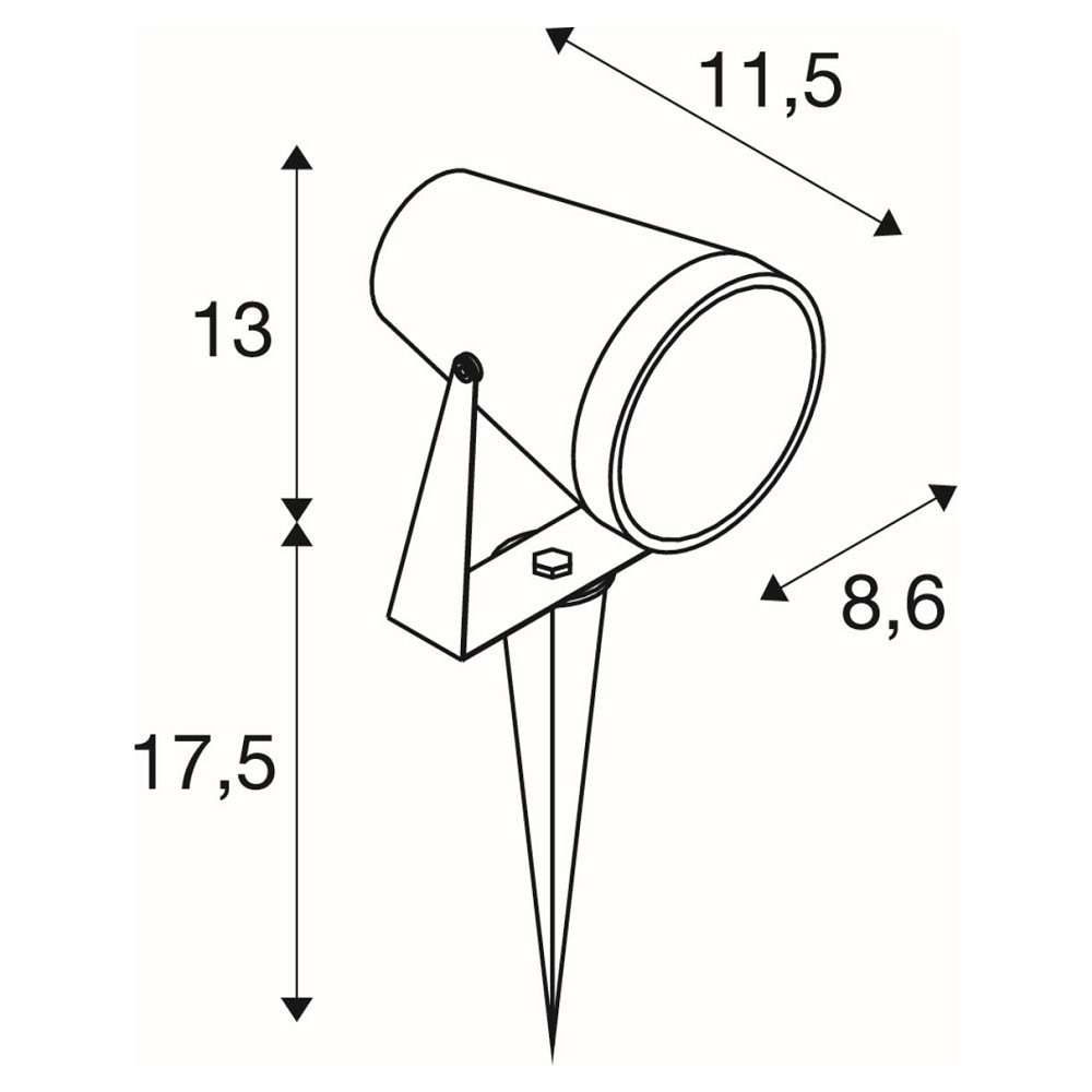 La lumière au sol à pointe SAMRINA SP SINGLE se distingue par son design moderne en noir et sa taille compacte de 11,5 x 10 x 13 cm. Le boîtier est en plastique de haute qualité et l'ampoule est protégée par un couvercle en verre. Avec un poids de seulement 0,45kg, cette lumière est facile à transporter et à installer.