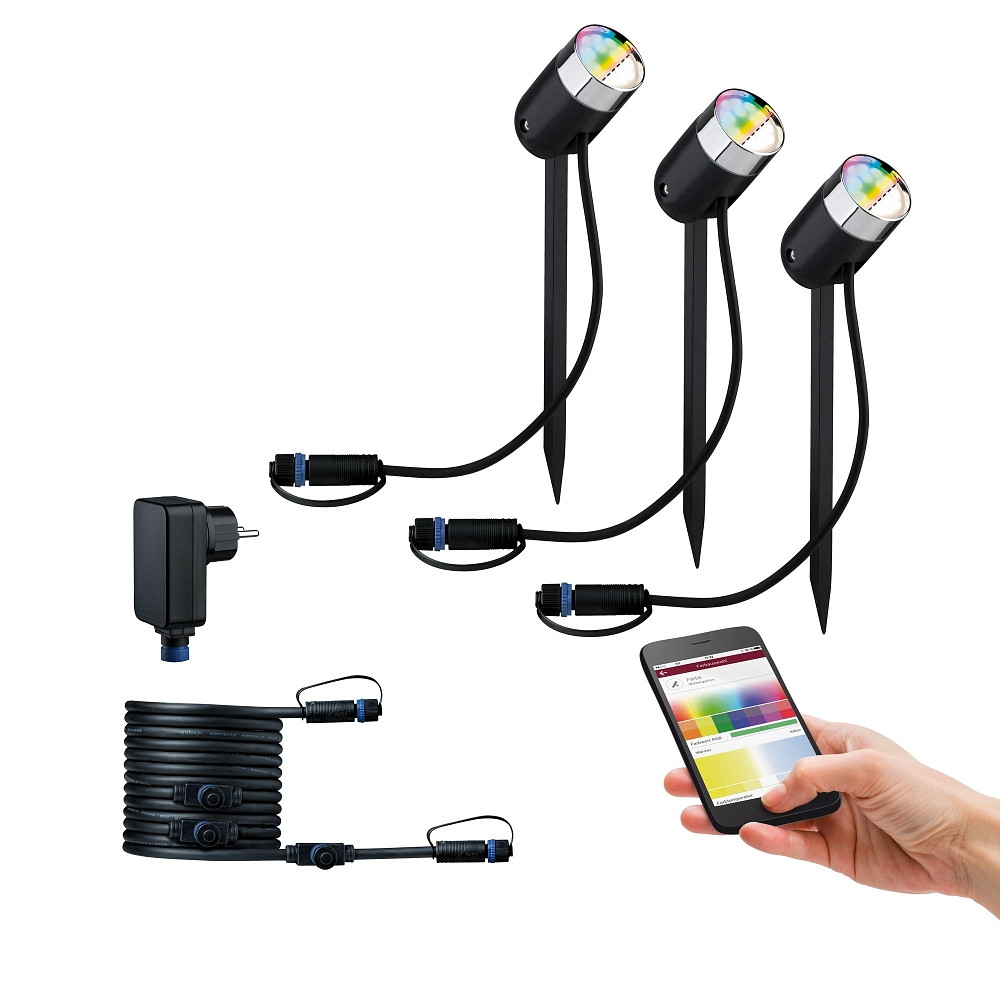 Lumière extérieure LED PLUG & SHINE PIKE ZIGBEE lot de 3, RGBW, contrôlable par ZigBee IP44, anthrazit gradable