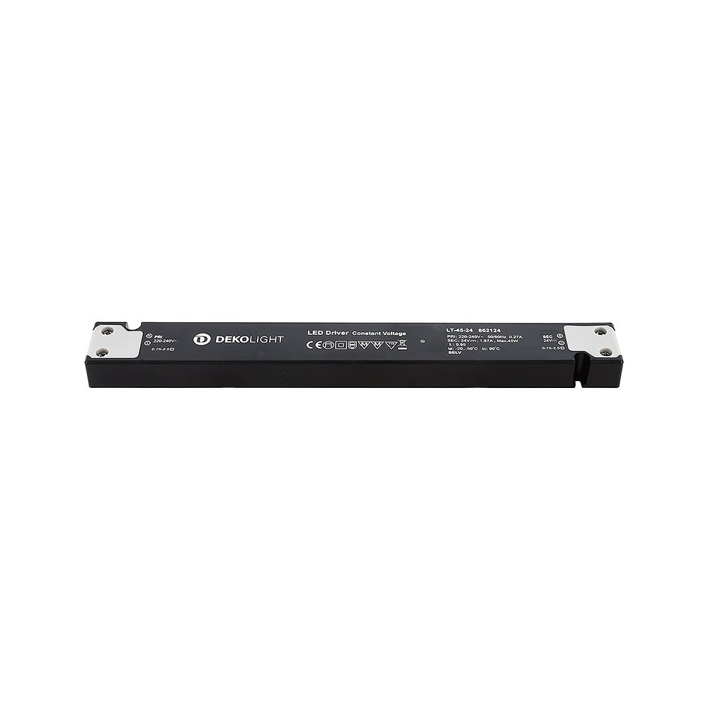 The power supply unit LONG-FLAT from Deko-Light offers a power consumption of 45W and an operating voltage of 220-240V AC. With an output voltage of 24V DC, it is ideal for indoor use.